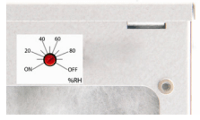 Avfuktaren har en inbyggd elektronisk hygrostat med inställning via en graderad skala placerad vid intagsfiltret. Där ställer du enkelt in önskat börvärde. När fukthalten överstiger det inställda värdet startar avfuktningen automatiskt. För konstant drift kan ratten ställas i läge "ON".